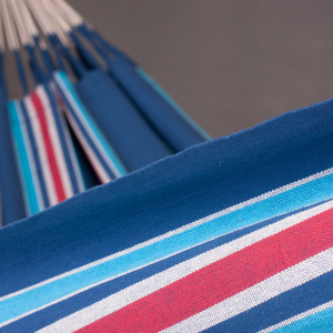 Die Hängematte Currambera wird in Kolumbien aus reiner und hochwertiger Baumwolle gefertigt. Sie hat eine besondere Websturuktur welche die Hängematte sowohl robust wie auch gleichzeitig äußerst anschmiegsam macht.