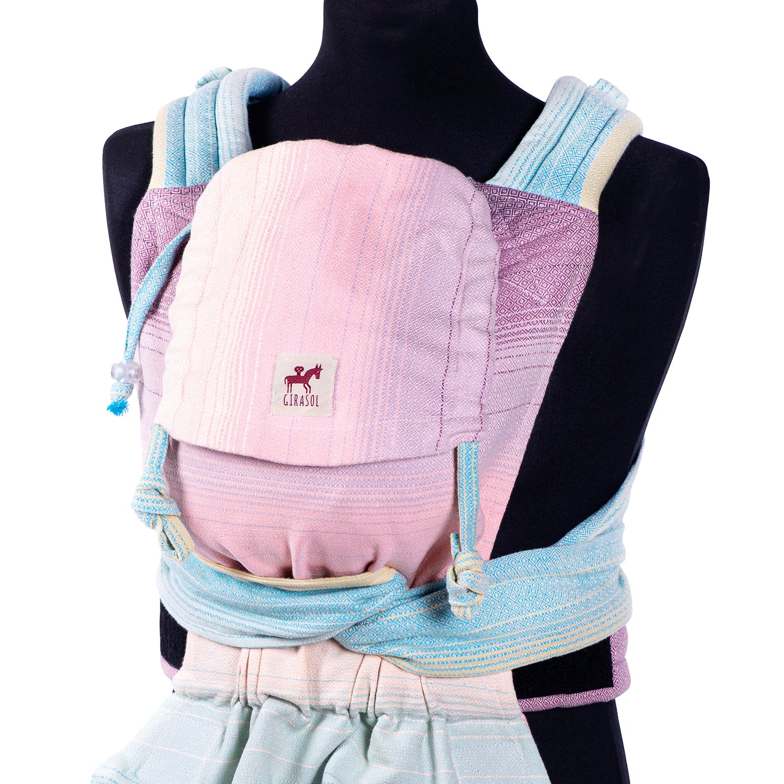 Der MySol® mit einem Bindehüftgurt ist eine klassische Mei Tai Babytrage. Ergonomisch, fair produziert und sicher.