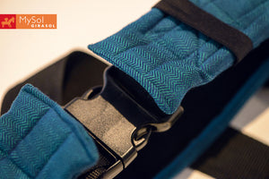 Mit Hilfe unseres Schnallenhüftgurtes kannst Du mit wenigen Handgriffen den MySol® von einem Mei Tai in eine Halfbuckle Trage verwandeln. Ebenso kannst Du den Schnallenhüftgurt für unseren WrapMysol verwenden.