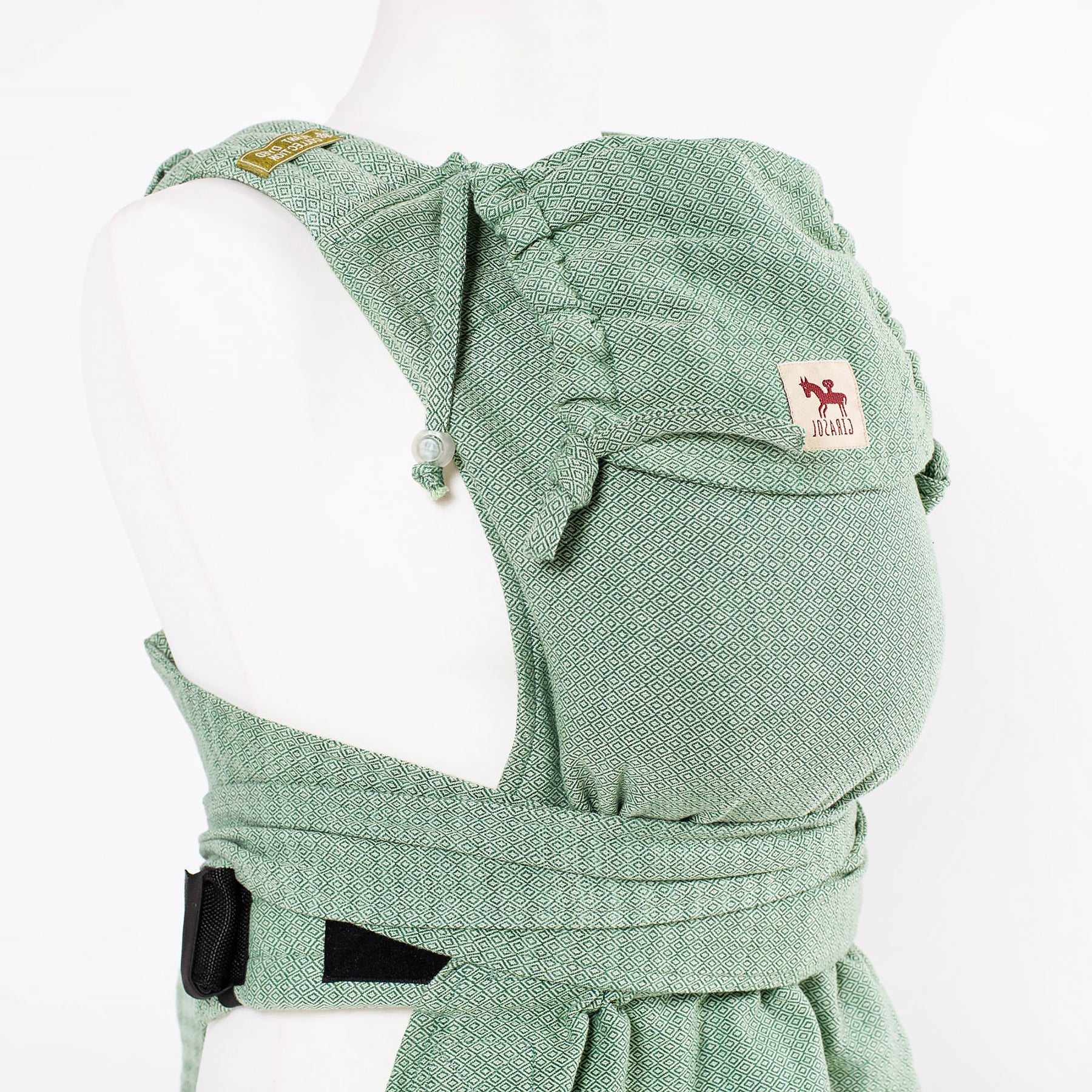 Der MySol® wird aus zwei Lagen des hochwertigen Kreuzköper-Tragetuchstoffs hergestellt, der sich wie eine zweite Haut um den Tragling schmiegt und so für die optimale Stützung sorgt.