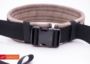 Mit Hilfe unseres Schnallenhüftgurtes kannst Du mit wenigen Handgriffen den MySol® von einem Mei Tai in eine Halfbuckle Trage verwandeln. Ebenso kannst Du den Schnallenhüftgurt für unseren WrapMysol verwenden.